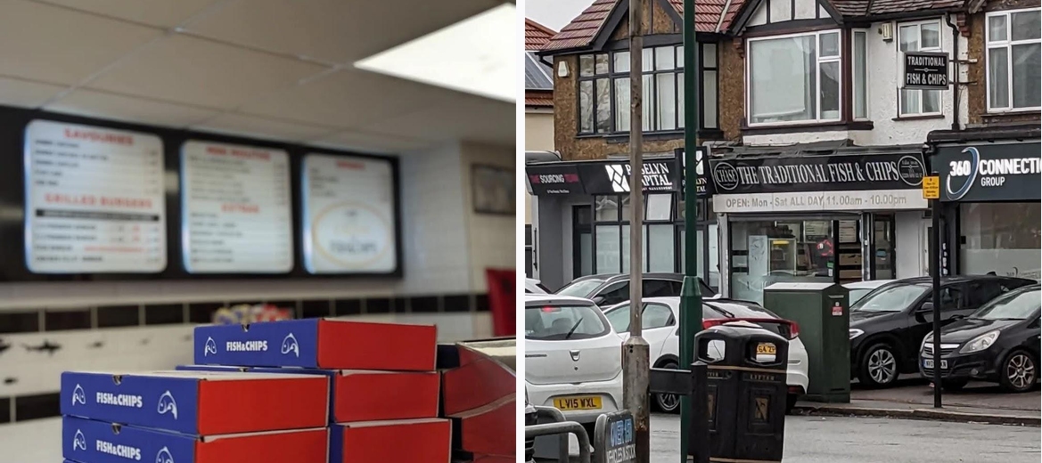 Chase Traditional Fish & Chips specializes in classic British fish and chips, featuring options like cod and a variety of savory dishes.